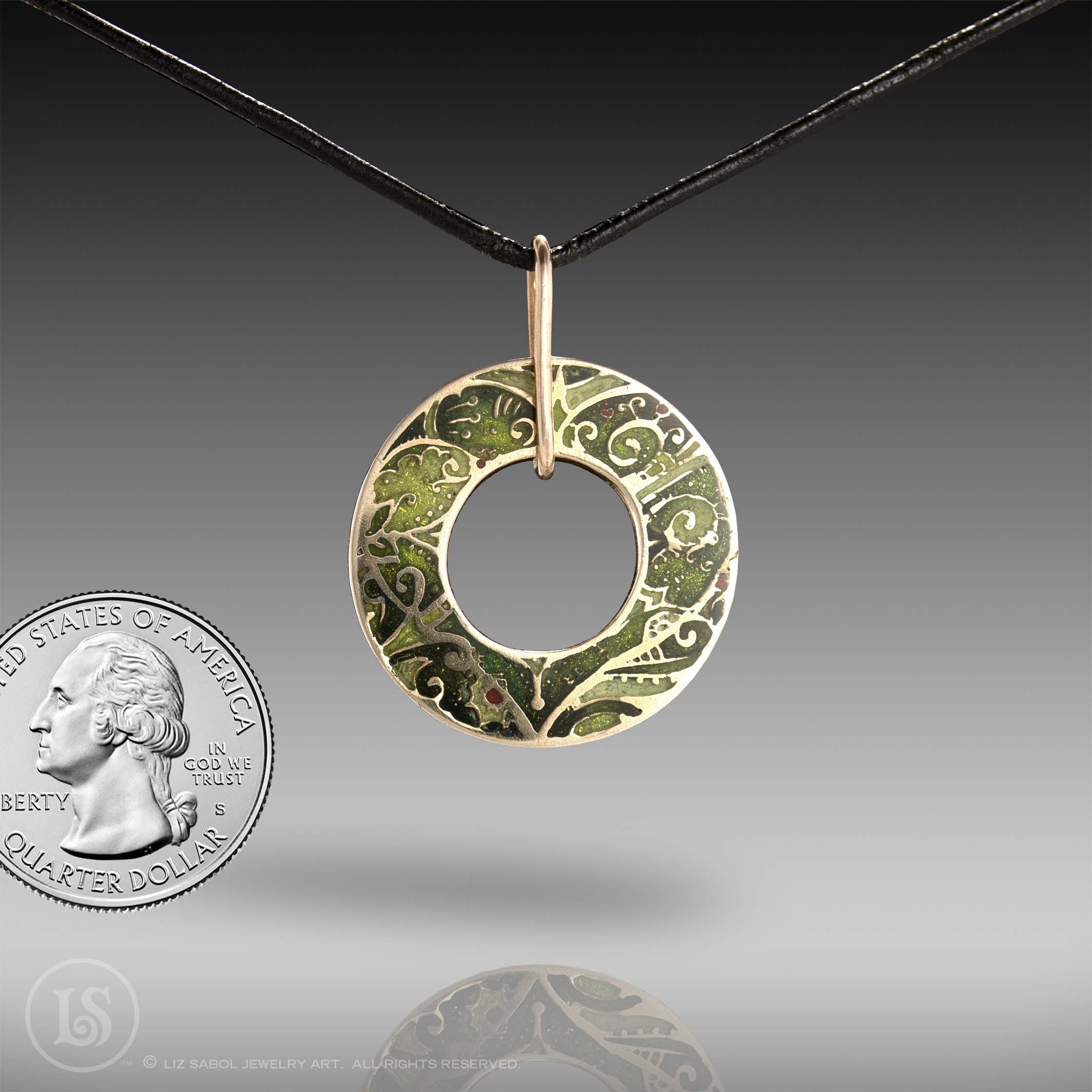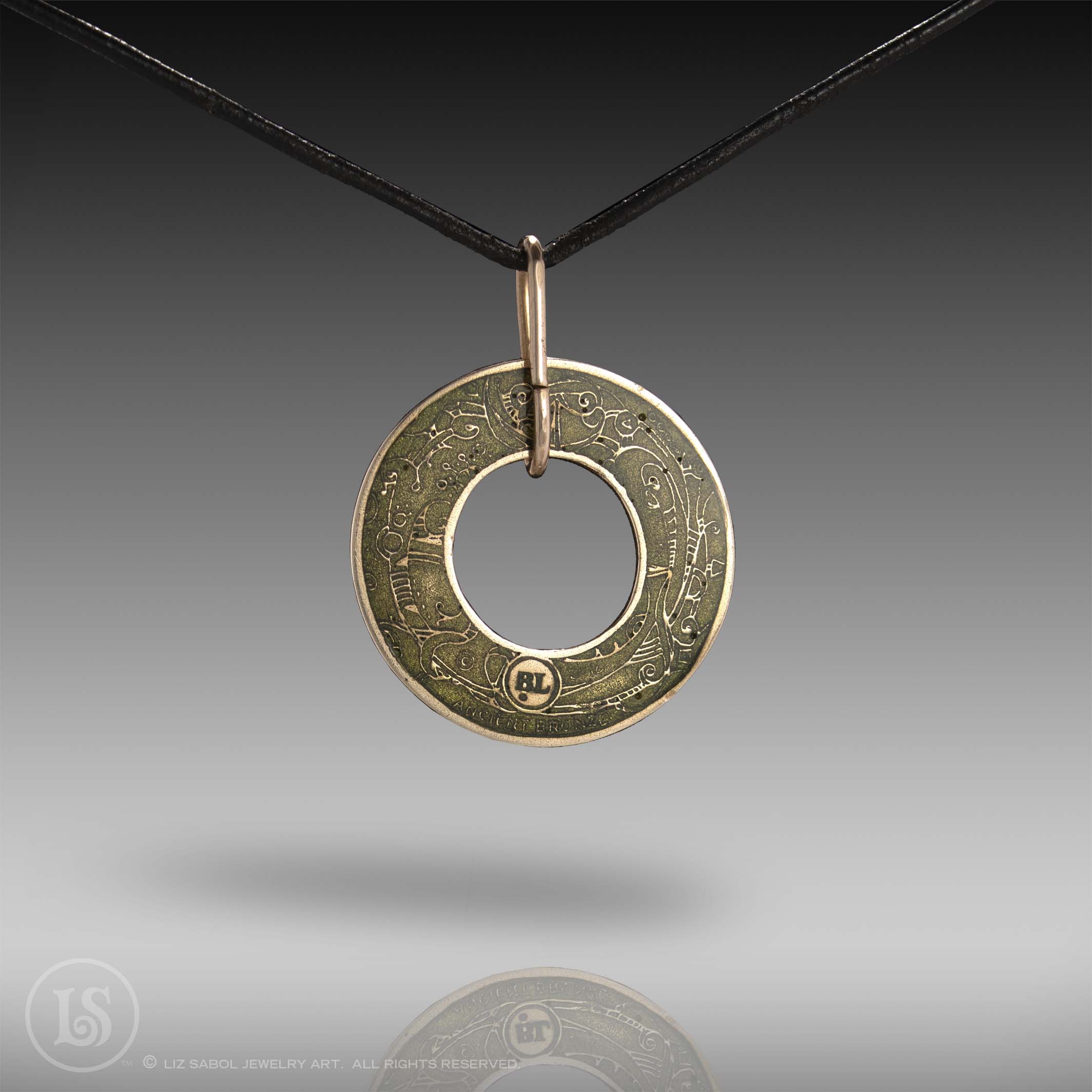 This bronze pendant is hand-crafted in bronze metal clay, hand-painted and filled with resin - on both sides.  The resin is sanded flush and re-polished.
