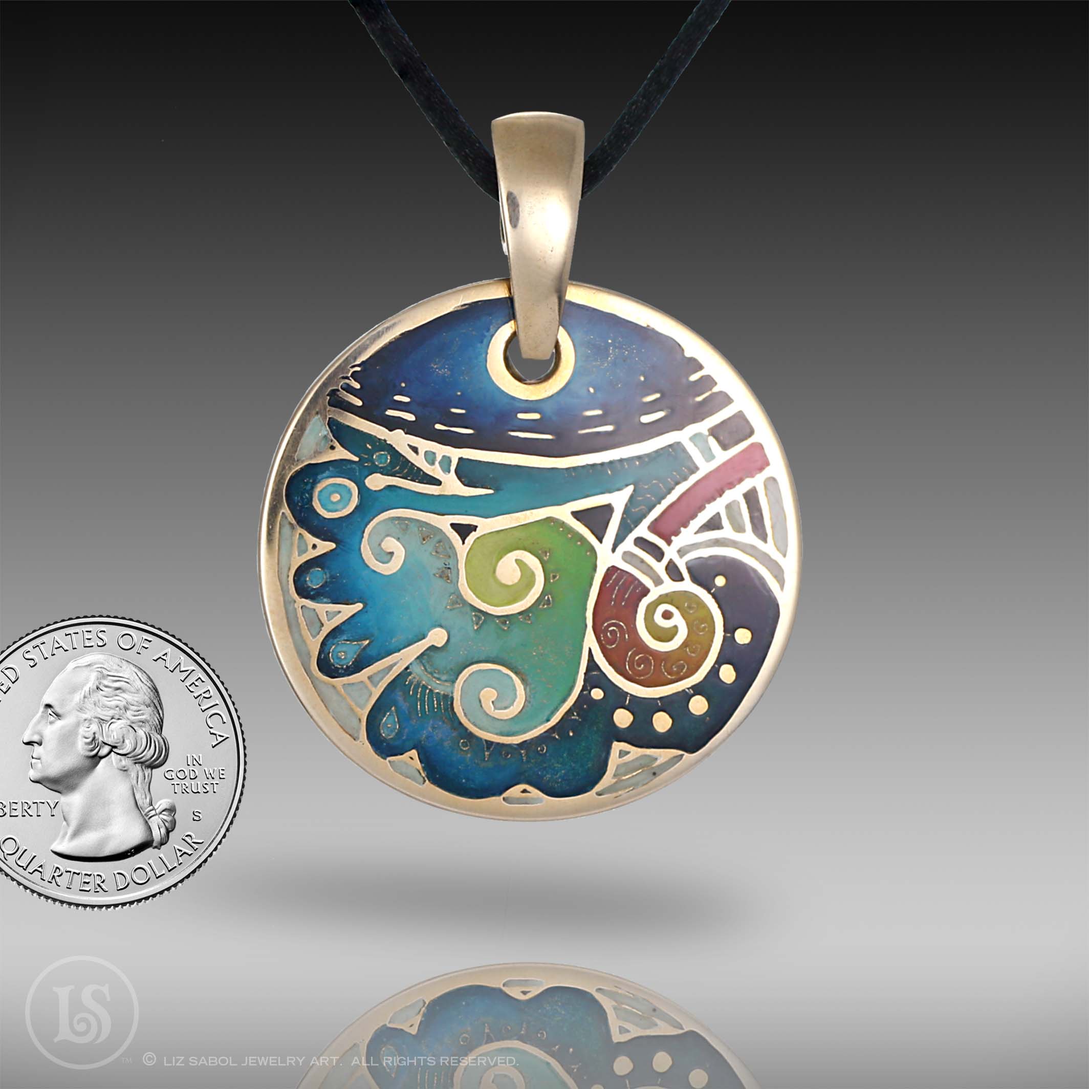This bronze pendant is hand-crafted in bronze metal clay, hand-painted and filled with resin.  The resin is sanded flush and re-polished.