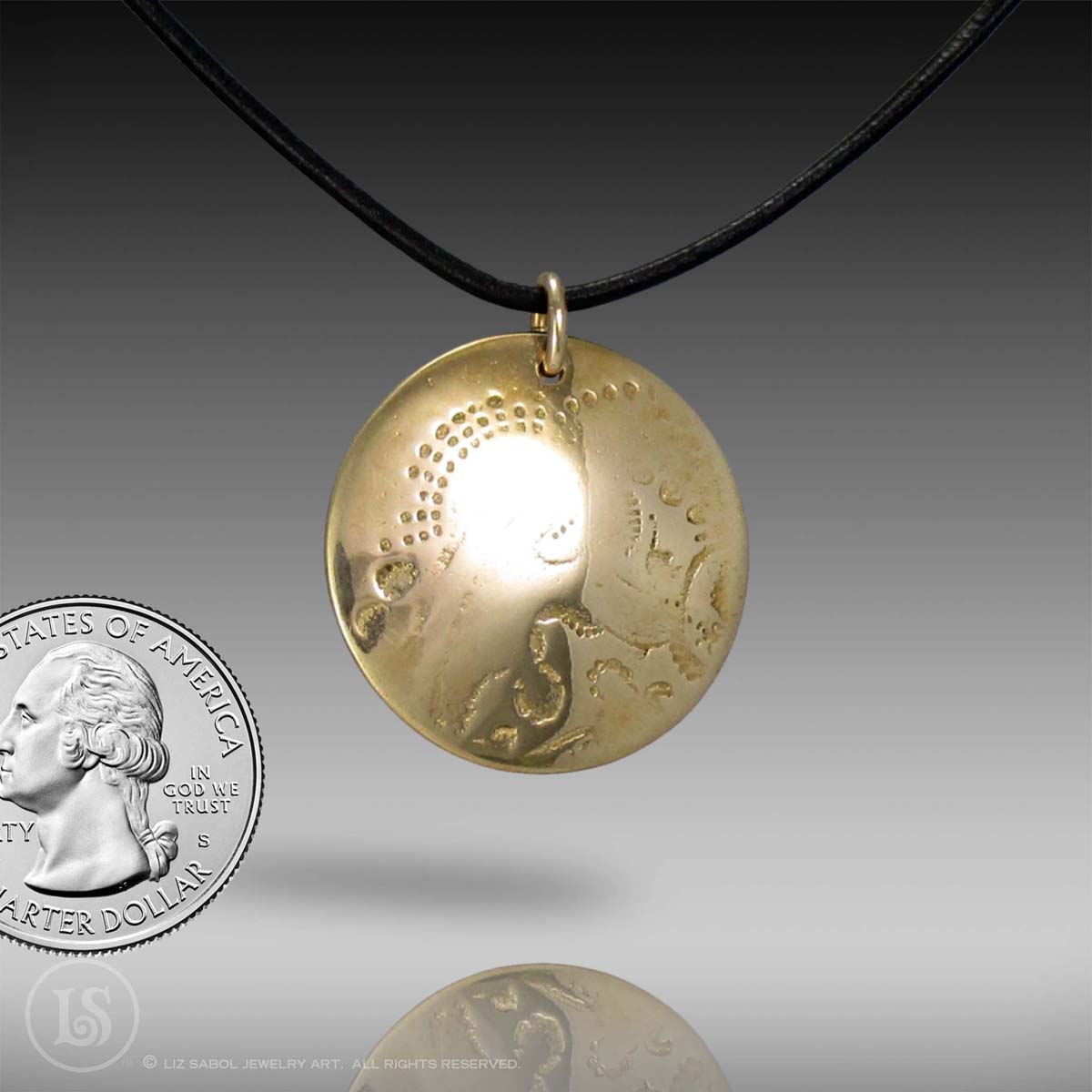 This pendant is hand-crafted in bronze metal clay. It features a texture I made from one of my pen-and-ink drawings.
