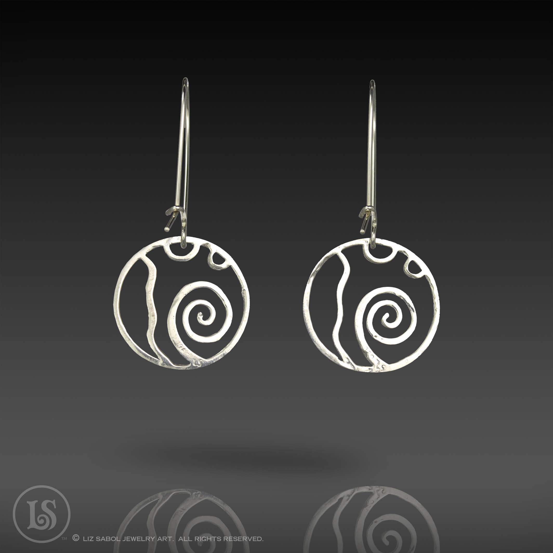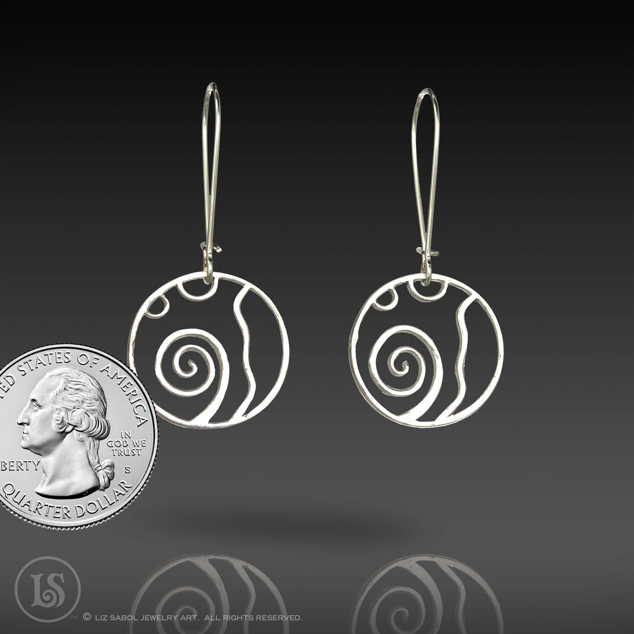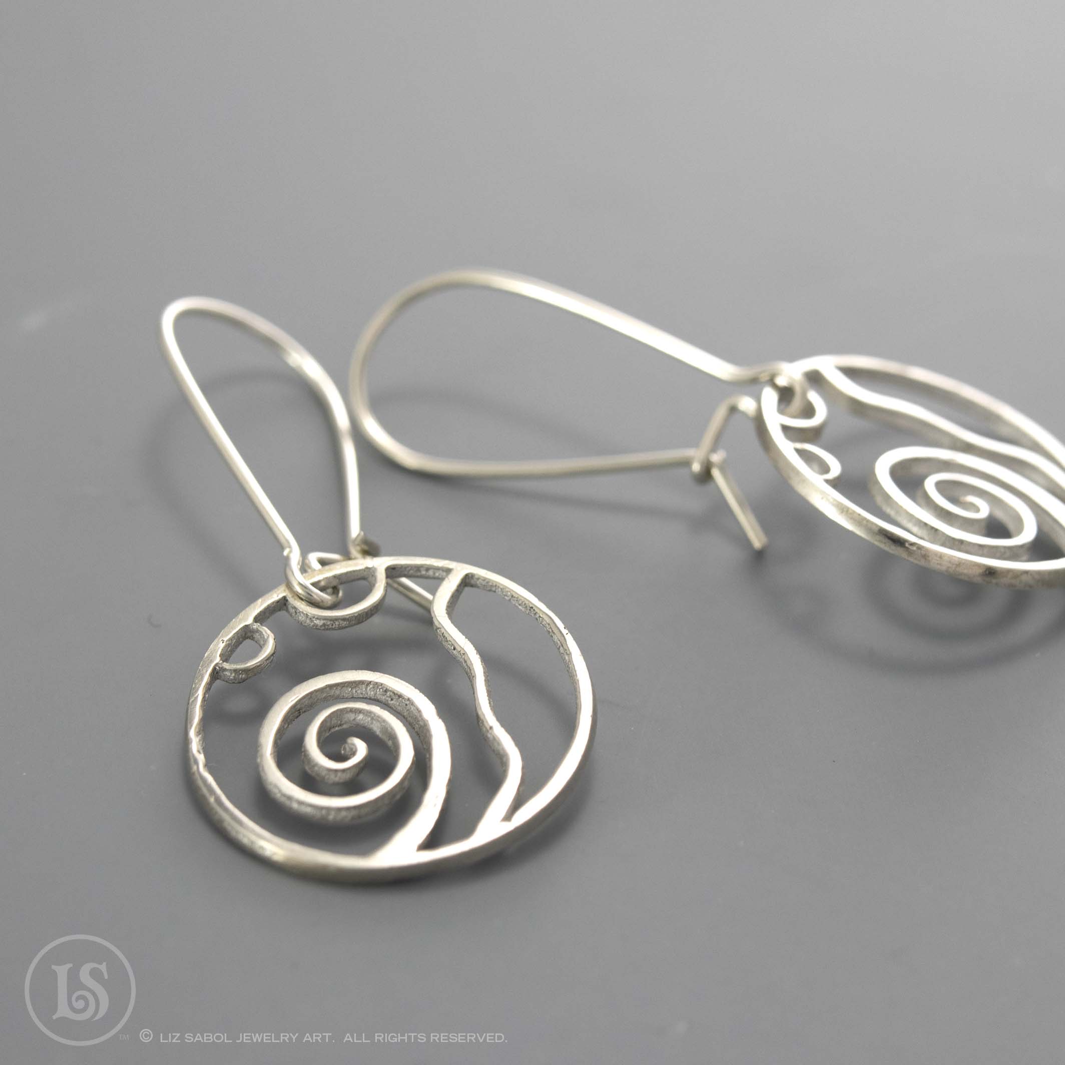 These earrings are hand-crafted from 960 sterling metal clay. The design is based on my Jupiter 2019 Saul Bell Design Award winning collection. The kidney earwires are 925 sterling silver and the wire thickness is 21 gauge.  There is a hook in the back, providing a secure closure to prevent loss. They are lightweight for comfortable wearing.
