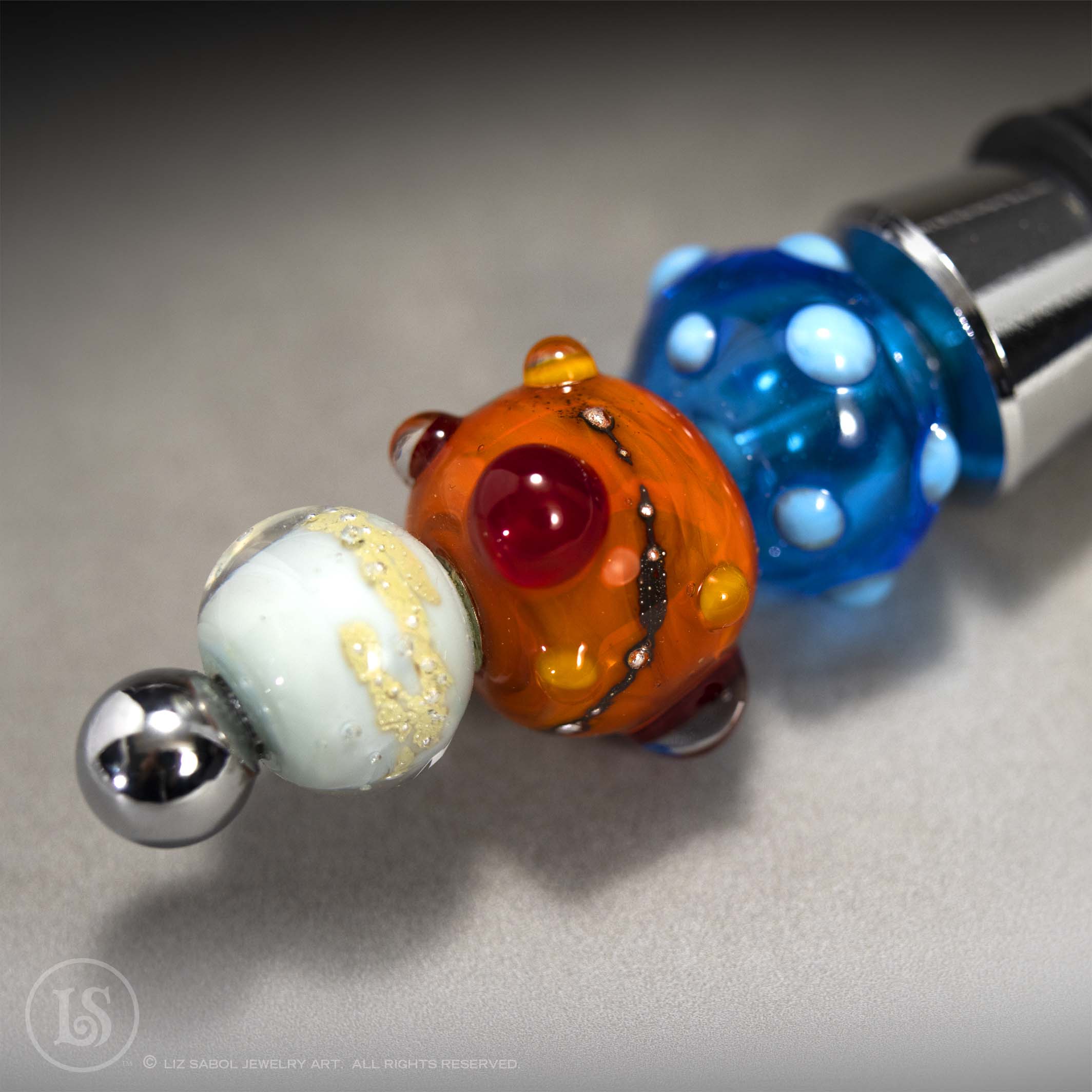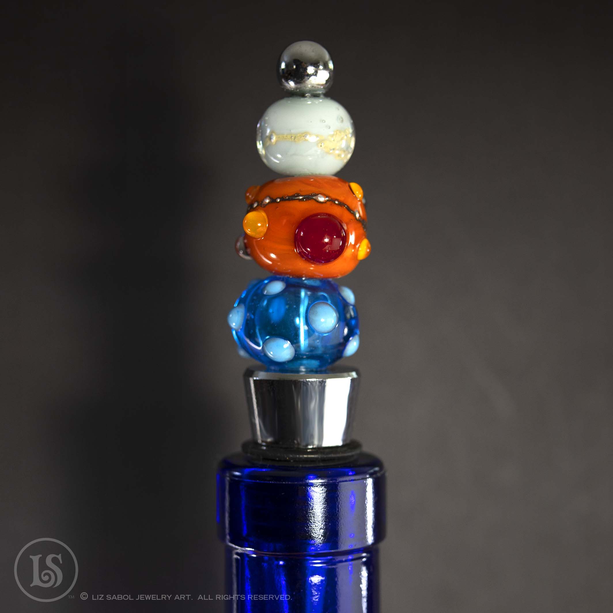 A collection of my lampworked glass beads makes a unique wine bottle stopper.