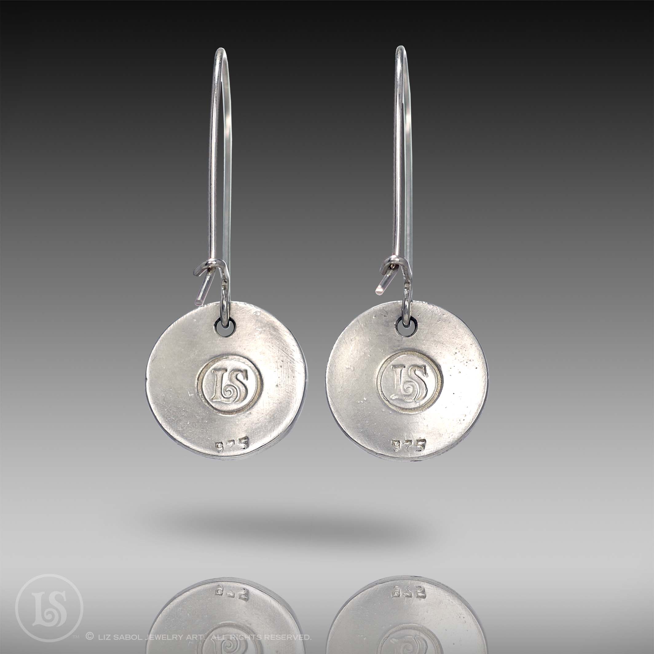 These earrings are hand-crafted in 950 sterling metal clay, hand-painted and filled with resin.  The resin is sanded flush and re-polished.  The kidney earwires are 925 sterling, and the wire thickness is 20 gauge.  There is a hook in the back, providing a secure closure to prevent loss. Lightweight at 2.5 grams each, makes for comfortable wearing.