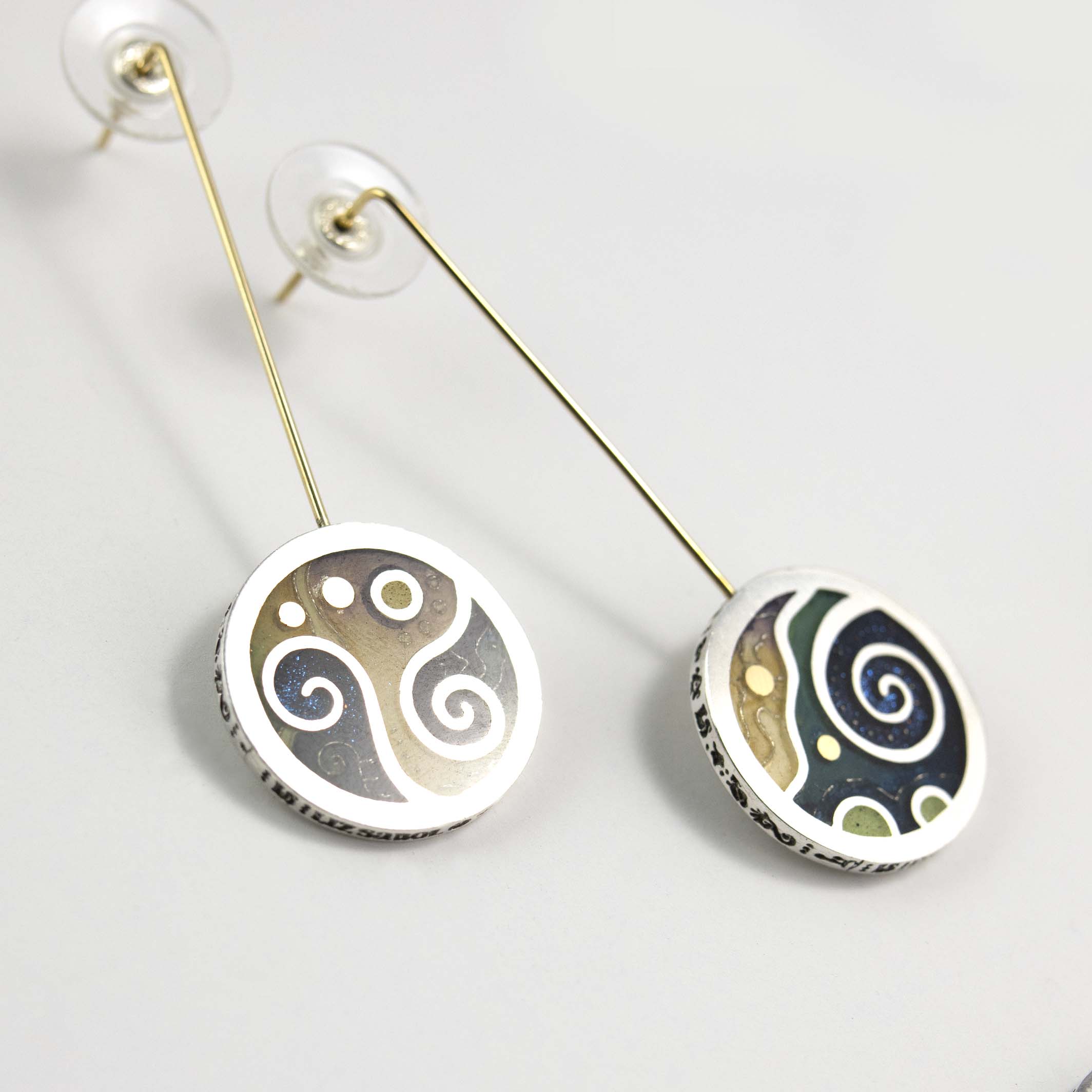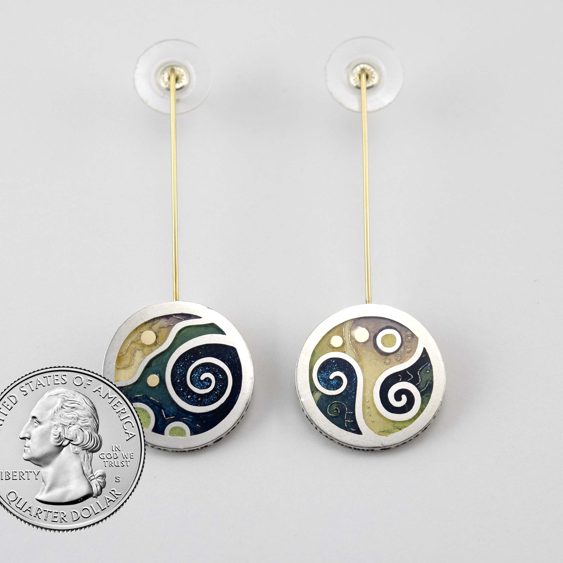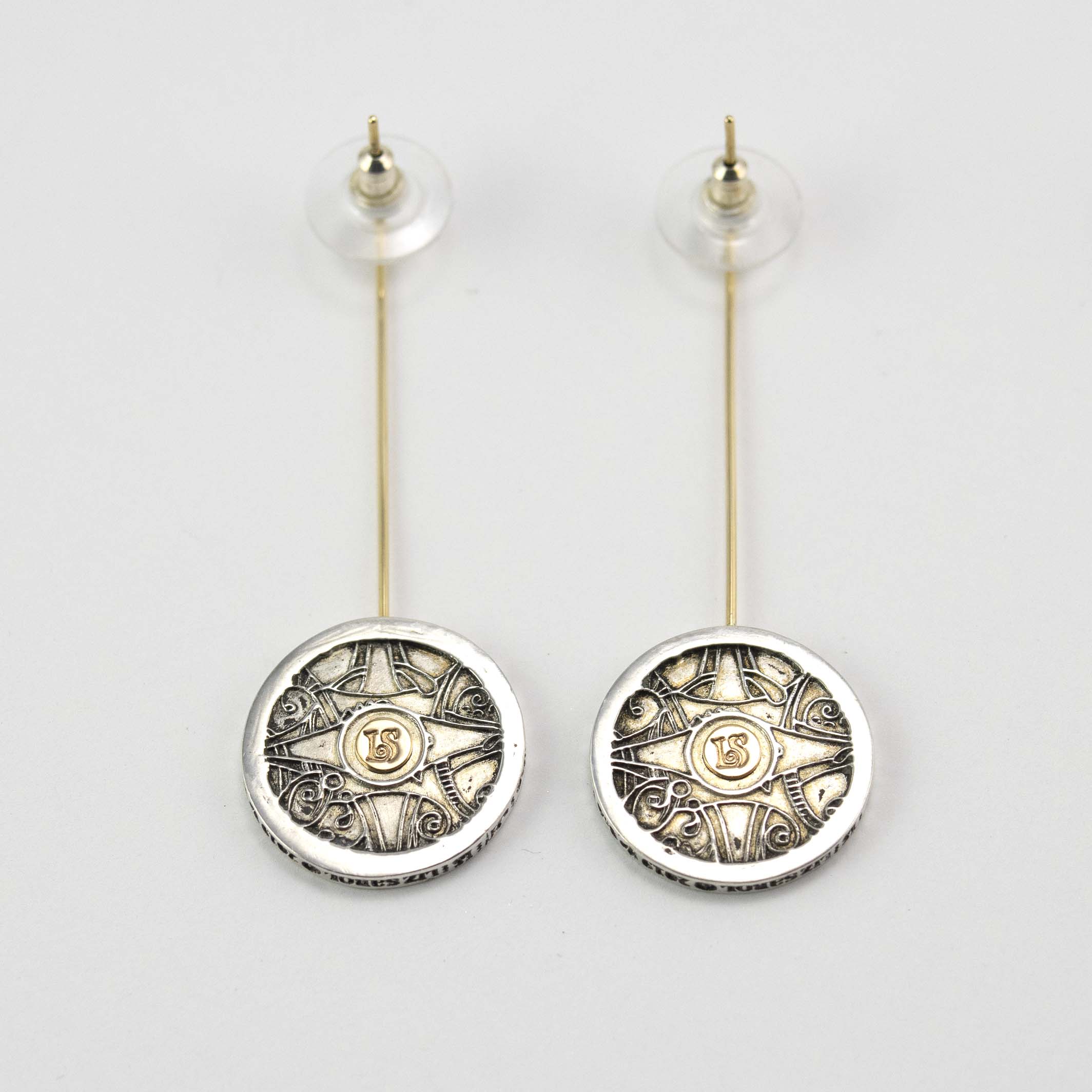 Earrings, 960 Sterling Silver, 14K Gold