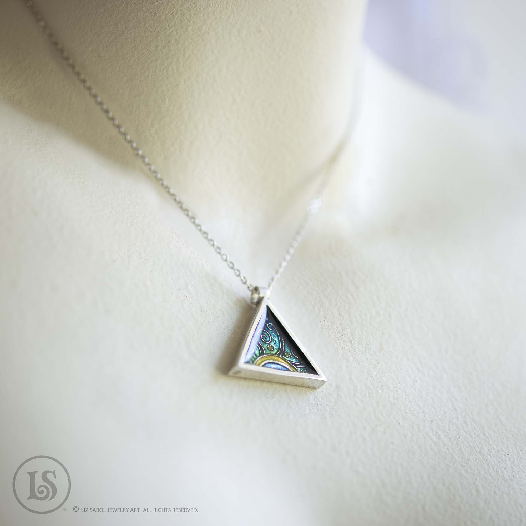 Aqua Dawn Triangle  pendant,  sterling silver