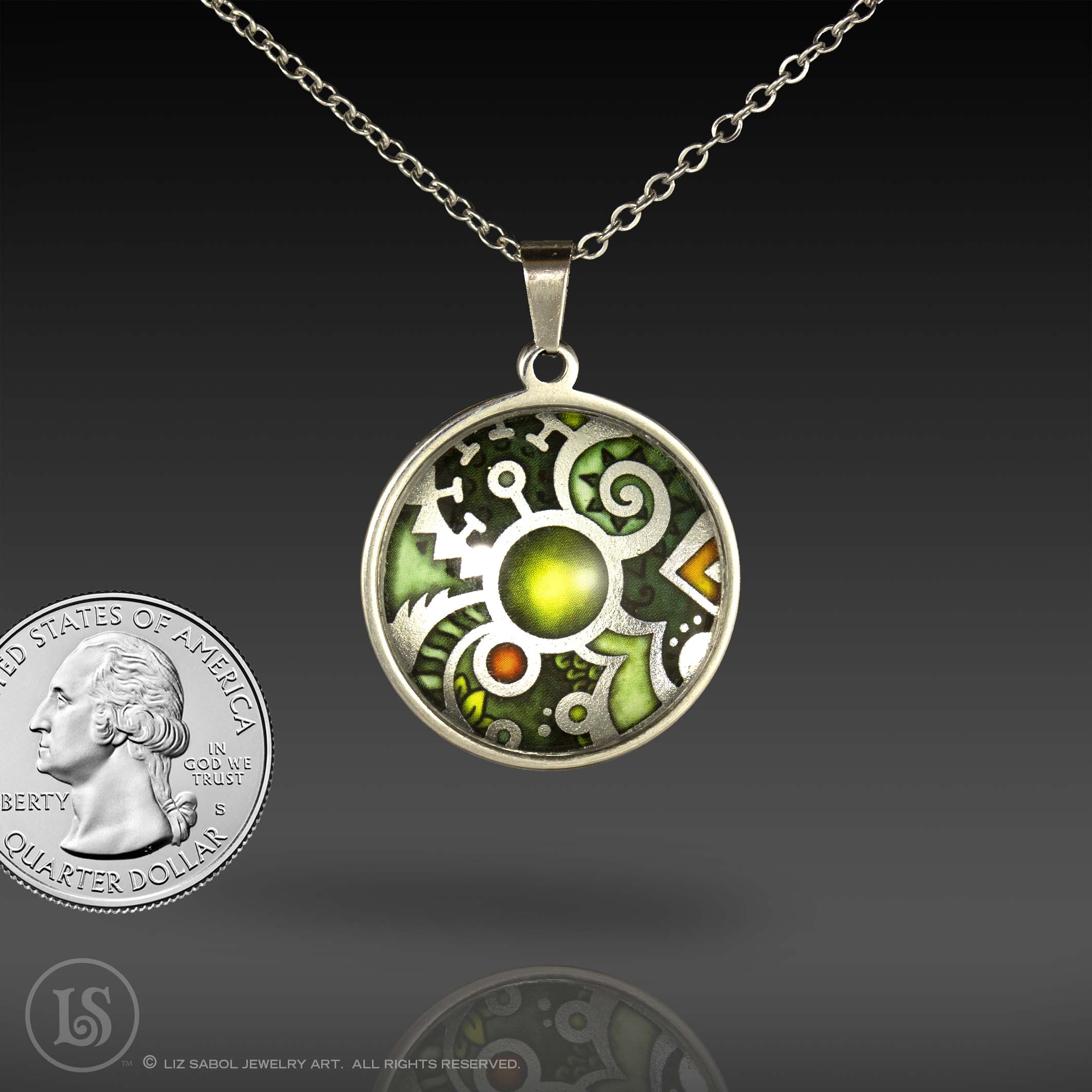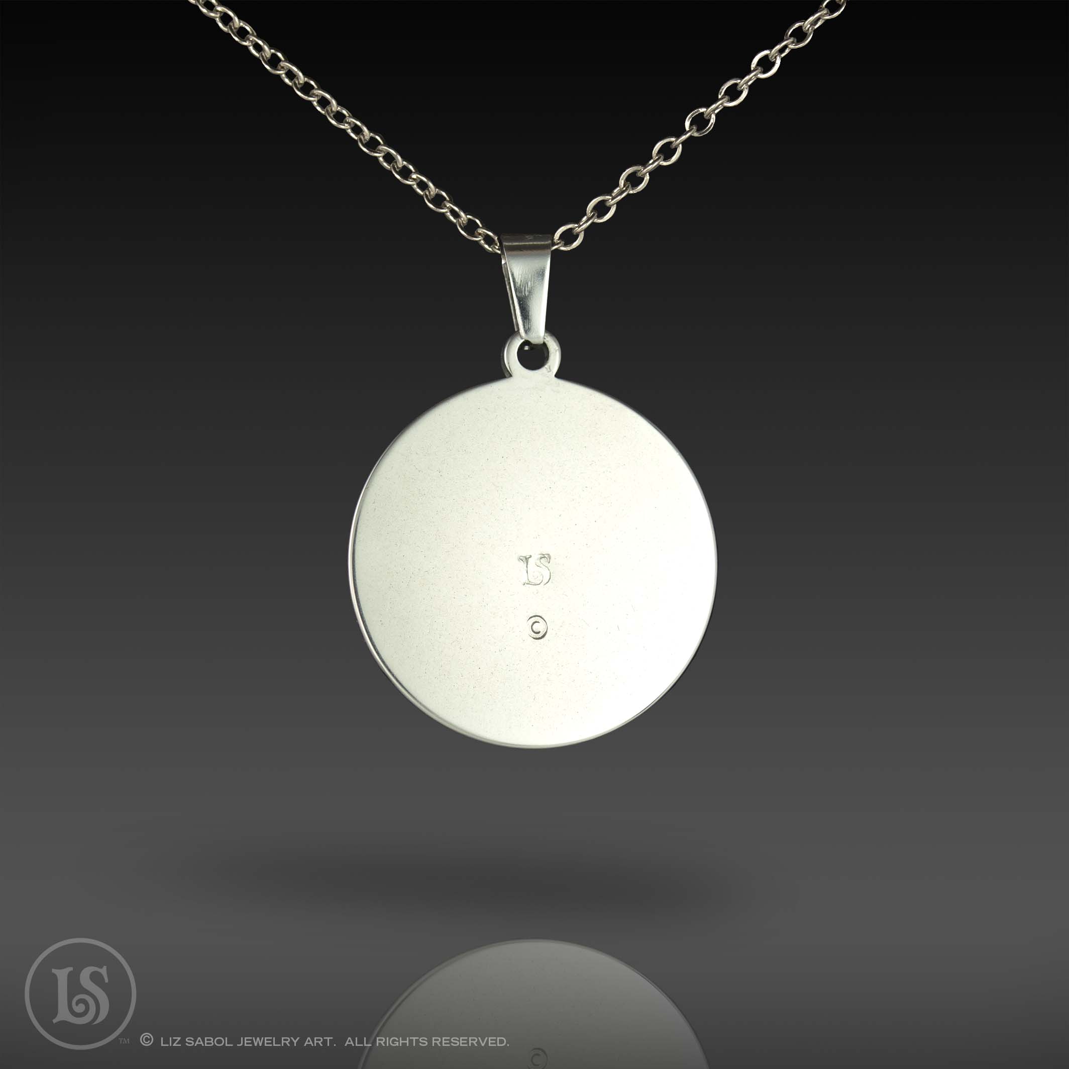 This is a high-quality reproduction in ink and foil of my popular handmade champleve handmade champleve Paisley design, mounted on stainless steel and covered in solid glass. Affordable for everyone. Comes with a stainless steel chain.