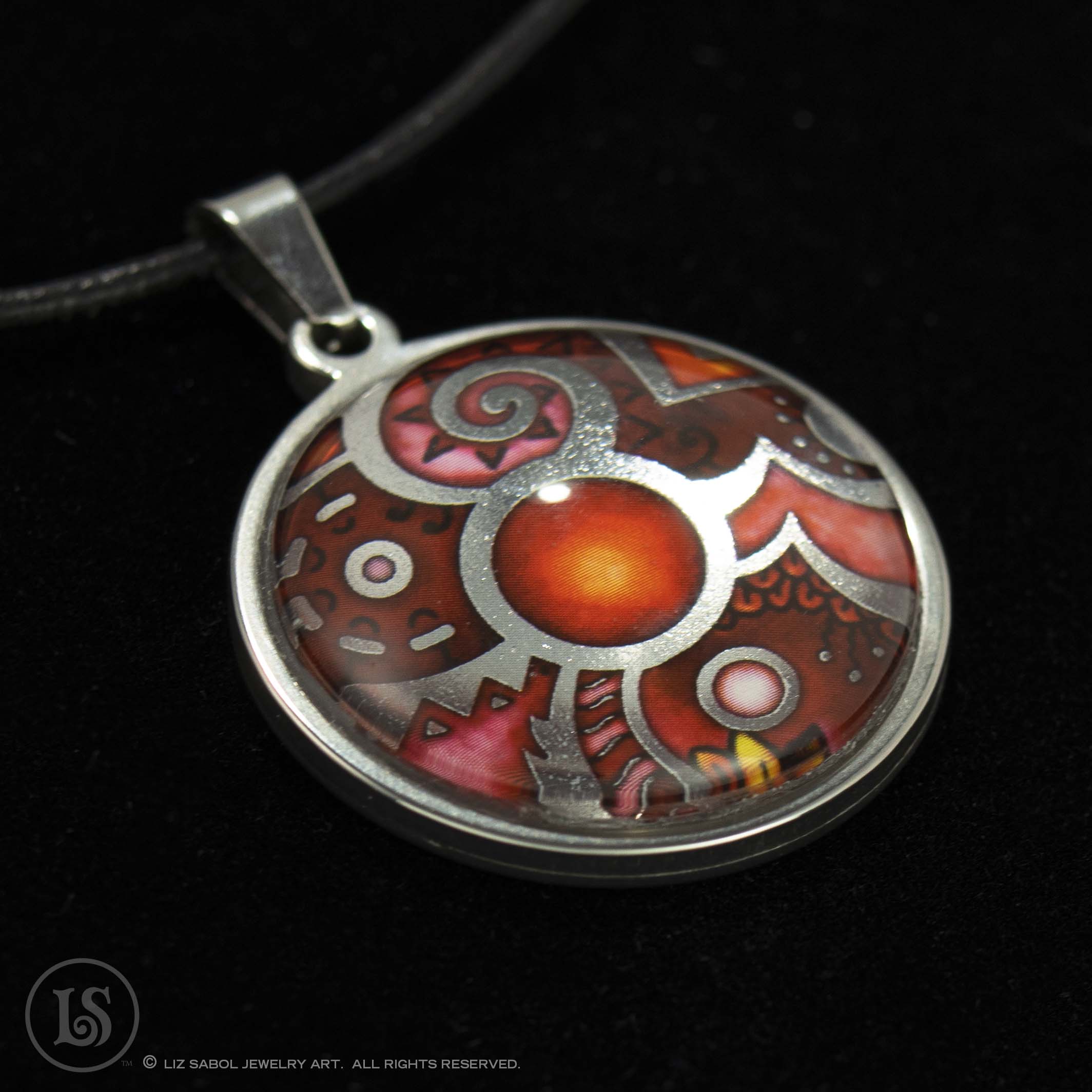 This is a high-quality reproduction in ink and foil of my popular handmade champleve Paisley design, mounted on stainless steel and covered in solid glass. Affordable for everyone. Comes with a stainless steel chain.
